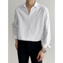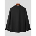Men Loose Solid Color Long Sleeve Lapel Collar Shirt