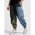 Mens Color Block Patchwork Elastic Cuff Loose Cargo Pants
